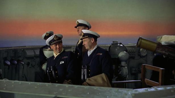 I don’t agree with the general lack of contemporary interest in The Battle of the River Plate (which was released in the US later in 1957, by Rank, as Pursuit of the Graf Spee). It is less expressionist than most P&P films and more concerned with the detail of the chase and the engagement and its aftermath. It doesn’t portray that 1940s idea of all working together, though we do see something of the ratings on the ships during the battle. The Captain Dove episodes do introduce us to the other captured Merchant Navy Captains and the potential of the Dove-Langsdorff relationship which could have been developed further. But overall it is a magnificent feat of filmmaking – a ‘big picture’, as was P&P’s intention. Naval historians and veterans will spot all the errors because of the use of substitute ships but it is a fine presentation of the historical event.