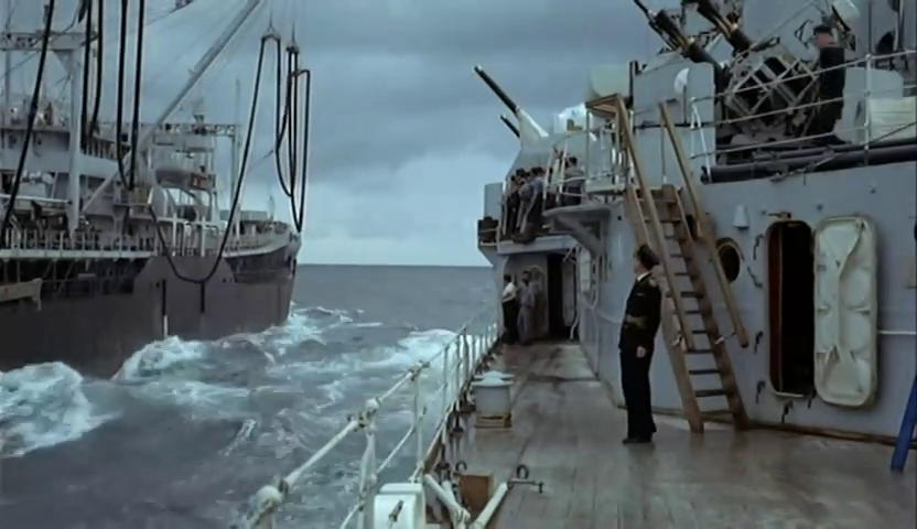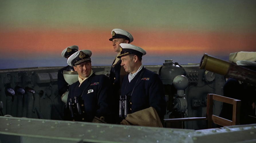 It’s worth noting that Rank made the decision, puzzling in retrospect, to produce a slate of pictures using VistaVision. I’d like to spend more time at some point on the undoubted qualities of the format. By running horizontally rather than vertically through the camera, VistaVision produced a much larger negative image and therefore a more detailed image for a projection print, even if the image was cropped to produce a widescreen format. VistaVision and Technicolor together produced stunning images, arguably superior to CinemaScope. However since Rank was distributing and exhibiting CinemaScope prints from other Hollywood producers in 1956 it seems odd to go with Paramount’s rival system. Odeons and Gaumonts under Rank’s control were being equipped for ‘Scope but VistaVision prints were generally narrower at anything between 1.66:1 to 2:1, compared to the CinemaScope standard of 2.35:1. The Battle of the River Plate appears to have been intended for projection as ‘modern widescreen’: 1.85:1. For more on VistaVision, see ‘High Fidelity Widescreen Cinema’, a research project by Stephen F. Roberts, University of Bristol 2018 which includes a detailed case study of The Battle of the River Plate.