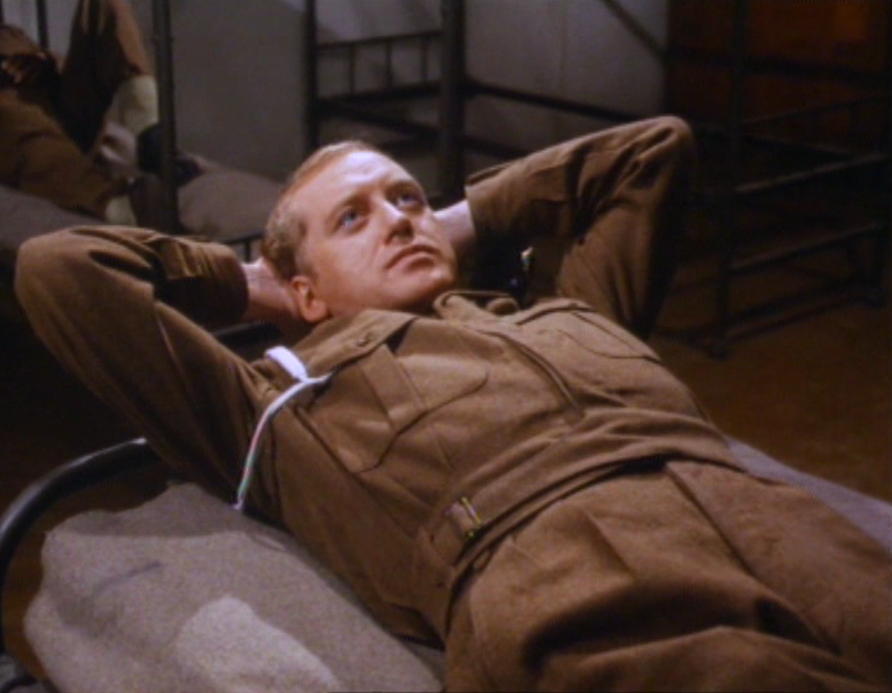 Barry Jackson (Shone) and Richard O’Callaghan (Rowe) play the youngest characters who are presumably National Servicemen. It’s noticeable that they do most of the tasks and that they are most likely to be bullied by the other four. Donald Gee plays Crowley as the older, quieter regular who has seen everything before and knows how to keep his nose clean. John Thaw’s character is the mouthy Londoner (although Thaw, like Warner and Gee was from the Manchester region). Inevitably, perhaps, McGrath’s script draws on the repertoire of British narratives about barracks life in which soldiers are identified by region and social class. It’s important for the drama that the group mixes regulars and national servicemen. Each has a different perspective on military life and different experience of what life outside the army might mean.