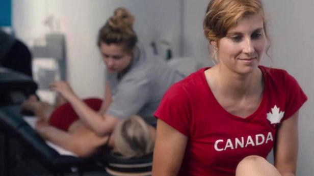 The other feature of the élite sports ‘bubble’ is the sense of being cocooned by the team organisation. Nadia explains she has never booked a hotel room or bought a plane ticket herself yet she has swum in many parts of the world. When she breaks away on her own she moves around Tokyo, though she never interacts with any Japanese. This sequence is presented with an electro-synth soundtrack and features the shopping and entertainment centre of Tokyo in an almost futuristic way. I’ve seen references by some reviewers to Sofia Coppola’s Lost in Translation (US 2003) and there’s something in that but I also thought of Chris Marker’s Sans soleil (France 1983), especially with the focus on the Tokyo 2012 Games mascot. Plante had to commission separate designs of the Canadian team swimsuits and other costumes and I assume that included the mascot. The new designs all look good and in the case of the mascot, better than the original? There is no conventional resolution of the film which may irritate some viewers but the inference is clear. Nadia will take time to process her experiences of swimming competitively and going to the Olympics and it will inform in some way how she tackles training as a doctor.