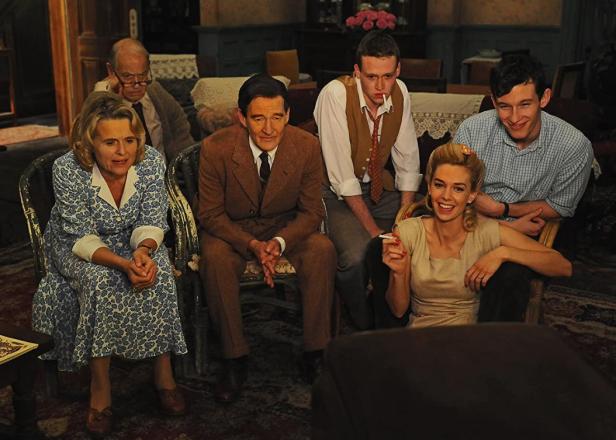 Queen & Country is mostly comedic in terms of the ‘army sit-com’, more like a romantic comedy drama/sexual awakening involving the mystery woman and the two nurses and a family melodrama back on Bill’s island home. However, it becomes much darker towards the end of the narrative, suggesting perhaps that Bill learns a great deal from his National Service experiences. The film worked very well for me, but then it should. It’s difficult to to work out what audiences without the historical background might make of it. At times the comedy is almost farcical, but it is carried through with conviction. Note the name of the regiment in the image above, the RARF, the Royal Agincourt Regiment of Foot. (A name which made me think of Carry On . . . Up the Khyber (1968).) But perhaps the the biggest mistake is the casting of Caleb Landry Jones as Percy. The Texan is now a significant actor in Hollywood, but I don’t think he was in 2014. He looks like he could be English but his accent in the film is all over the place and in the image above where he and Callum Turner are meant to be standing ‘at ease’ in the CO’s office, everything about his stance is wrong. As a generic character in comedy about young men, he is fine but as a significant figure in Boorman’s complex presentation of time and place he is ‘out of place’.