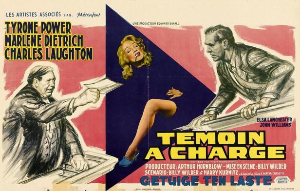 Agatha Christie reportedly told Billy Wilder that this adaptation of her stage play (a success on Broadway in 1954) was the best adaptation of any of her works. The original short story had appeared in 1925 and has since been revised and re-worked many times: the play re-opens in London in a couple of weeks. After watching it on BBC4 (I don’t think I’d seen it previously) I decided that the film is very entertaining and beautifully directed and performed – but as a dramatic narrative it is simply tosh. On the other hand, audiences do love Christie’s narratives, or perhaps it simply that she creates interesting characters and twists and turns which produce puzzle structures? I’m not really a Christie fan but Wilder does intrigue me. There is an announcement at the end of the film urging the audience not to give away the ending. I suspect that most audience members will have worked out the twist well before it is revealed, but probably not all the following actions. I don’t usually like guessing the twist in narratives but in this case it is too obvious to ignore – but don’t worry, no spoilers here.