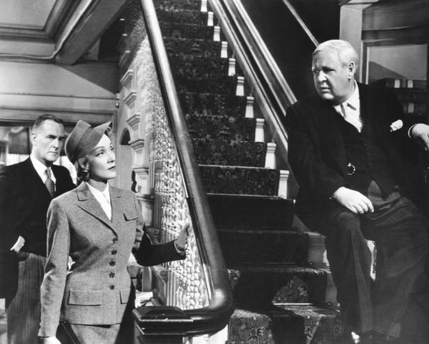 Billy Wilder arrived in Hollywood as a scriptwriter from German cinema in the mid 1930s. He started directing with a screenplay written by himself and Charles Brackett in 1942 for The Major and the Minor. With Witness for the Prosecution he worked on a screenplay with Harry Kurnitz based on the adaptation of Christie’s play by Larry Marcus. The twists and the detail in the narrative presumably came from Christie but Wilder would have had a hand in the dialogue and Laughton and Lanchester (husband and wife) could be relied on for a polished interpretation. The same goes for Dietrich and Power. I found the dialogue exchanges often exciting and very funny. If you want an entertaining film with players at the top of their game, this is a good choice. It’s in Black and White like most of Wilder’s films up to Irma la Douce in 1963. The photography is by Russell Harlan with art direction by Alexandre Trauner, both masters of their craft. Though it isn’t a film about visual splendour, they make the most of the sets. This may also be one of the earliest features to promote the stairlift as a device to ferry the ailing Roberts up to his bed from his office – though they seem to have been available in the US since the 1930s. Witness for the Prosecution is available on BBC iPlayer in the UK for the next 27 days.