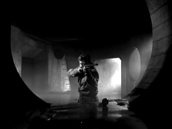 The police procedural idea was to take the idea for a film from a real case and to film on location in Los Angeles. Roy Martin/Morgan (Richard Basehart) is a burglar specialising in the then new electronics goods market (radios, TVs and tape recorders etc.) He has also acquired an arsenal of weapons and one night when he is disturbed by a police patrol car he ends up shooting a police officer. This sets off the procedural narrative which ends in a chase through the Los Angeles storm drain system, something used since as either an LA-set device or using sewers and underground tunnels in other locations – but this may be the first use and it benefits greatly from Alton’s camerawork. I enjoyed the film very much though I was struck by the moment when the officers in a patrol car hear over the radio that one of their colleagues has been shot. They are suddenly electrified and burst into action. I hope they would react similarly if any member of the public is shot. This shot reminds us that the film (and many similar procedurals that followed) relied on the co-operation of police forces which perhaps led to a selection of stories and an influence on how these were presented.