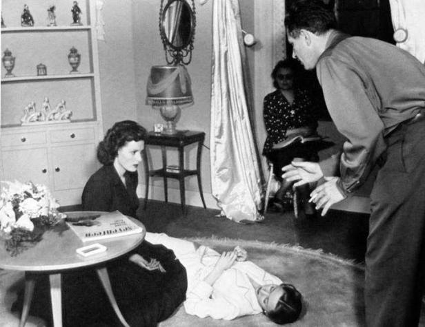 The film starts with Susan’s radio show and then the argument. Marian’s back story is filled in with quite lengthy flashbacks and we get to see how her relationship with Susan developed. The narrative might best be described as ‘playful’. The original material was adapted by Herman J. Mankiewicz, one of the most celebrated Hollywood screenwriters from the mid-1920s through to the early 1950s, so this was one of his last screenplays. His younger brother Joe was also a talented screenwriter and director of films like All About Eve (1950). Herman is perhaps best remembered as the Oscar-winning screenwriter of Citizen Kane and the man known as ‘Mank’ about whom David Fincher directed a feature of the same title in 2020. His playfulness here comes out in some of the dialogue and in the development of a sub-plot about the detective assigned to the case, Det. Fowler (Jay C. Flippen) and his arguments with his wife (Mary Philips). Husband and wife squabble as he always brings his work home. This time Fowler gets very pally with Luke Jordan, discussing the case at length and in response Mrs Philips gets out her Sherlock Holmes kit and proceeds to do her own sleuthing.