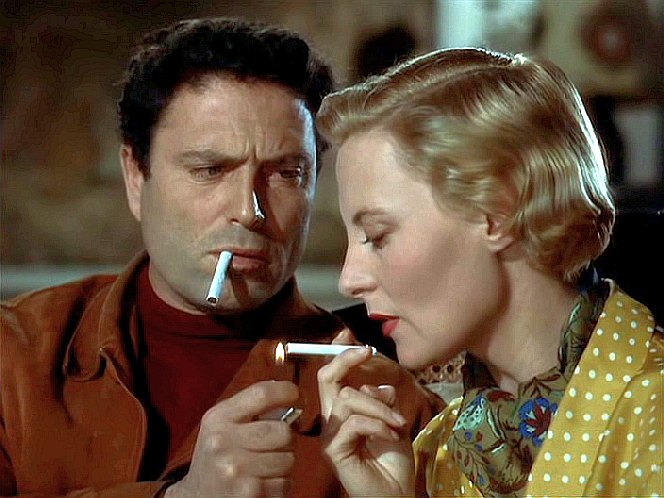 None of these points negate the validity of the exercise involving comparing Delannoy’s conception of a William Irish story with the two examples from Truffaut. His film shares Truffaut’s use of established stars. Jeanne Moreau in The Bride Wore Black and Catherine Deneuve in Mississippi Mermaid function as star attractions in the same way as Michèle Morgan in Obsession (and Raf Vallone is an equivalent for Jean-Paul Belmondo in Mississippi Mermaid). There is nothing wrong with the performances in the film, nor the script. The main difference between the films is the ‘look’. Obsession is a studio film with only a few location-based shots. For much of the time this isn’t a problem as such and the sets are well-constructed. However everything collapses in the last scene when I thought that the street scene was so poorly put together it could have been a spoof. This 1954 film sometimes looks like a colourised version of a 1930s or 1940s picture. It’s one of the earliest French colour features that I’ve seen, shot in Eastmancolor and printed by Technicolor. There are moments when the colours of costumes and set dressings seemed to clash (see above). The images appear ‘painterly’ with an artificial palette. Truffaut’s two films, and especially Mississippi Mermaid with its trip to Réunion in the Indian Ocean, still seem ‘modern’ by comparison.