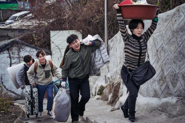 The film’s protagonist emerges as ‘Producer Lee’ or Lee Chan-sil (Kang Mal-Geum). This 40 year-old finds herself without a job and few prospects after working with the same arthouse director for some time. She realises that her job as producer was one that most people she meets don’t really see as important. “But what do you actually do?” She is forced to move to a room in a house on top of the hill overlooking the city. It’s such a steep climb that she must recruit three of her younger ex-colleagues to carry her belongings. When she gets to the house with its views out over the city, we meet her landlady played by Youn Yuh-Jung, the beloved grandma in Minari (US 2020). As Chan-sil gradually begins to understand her situation she realises she needs to earn some money and ends up cleaning house for her friend, a successful but empty-headed young actress named Sophie. Her relationships with Sophie and with her landlady (who is struggling to overcome her own illiteracy because of her poor education in the 1950s) help us to understand the changes in women’s lives in Korea but also the still powerful restrictions of traditions. Chan-sil has not had a relationship for a decade. Does she need one now? She could test one out with Sophie’s French teacher perhaps. But Chan-sil is not sure. Trying to push her into looking inside herself is a surprising extra character, the ghost of ‘Hong Kong Cinema Legend’ Leslie Cheung, played by a young Korean look-alike. Cheung was a beautiful young man who took his own life aged only 46 and depressed by the celebrity gossip about his sexual identity. He has been sorely missed by everyone who admired his great range of work in Hong Kong and later mainland Chinese cinemas. Cheung’s ghost is inappropriately dressed in the singlet and boxers he wore in one of his iconic roles in Wong Kar-Wai’s Days of Being Wild (HK 1991). He shivers in Korea with the coming of winter – he’s a very corporeal ghost.