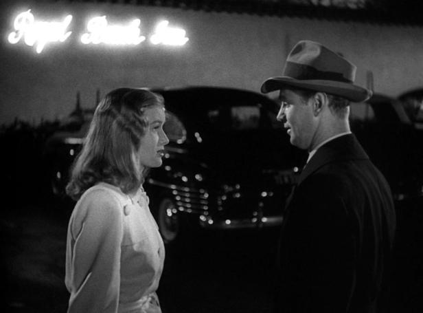 I’m something of a novice at attempting to assess the quality of dialogue, but this exchange seems to offer something different. I think it demonstrates what Chandler could bring to screenplays. For my money it shows the attraction between the two characters with Johnny wanting to continue the verbal game they have been playing, but feeling vulnerable after the row with his wife and Joyce (Veronica Lake) still up for more. As in a romance narrative, we expect that their will be obstacles but we know their relationship will develop and they should be together at the end.