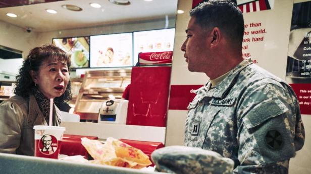 If the surrogate ‘family’ seems a quite conventional device, there is also another familiar character in the form of a documentary filmmaker who wants to record an interview with So-young – prostitution is illegal in South Korea, though seemingly not very strictly enforced despite occasional ‘sweeps’ by the local police. Director Lee Je-yong has been criticised by some commentators for cramming too many stories and too many themes into his film. I don’t really agree with this. Lee seems very much in control of the narrative, though in the last third it does change a little, becoming focused on a set of key decisions that So-young takes that will ultimately determine her fate. One of the interesting aspects of the narrative for me is the impact of the American occupation of the country, which lasted much longer than the occupation of Japan, and how it eventually led in turn to both Korean migration to the US but also the creation of a Korean-American (including a Korean-African-American) minority following the local relationships involving American servicemen. This matches similar Vietnamese experiences, but more recently Koreans themselves have created their own mixed families during time spent on overseas visits for education or business in other parts of Asia. We learn eventually that the boy So-young has been looking after speaks Tagalog. Later she meets an American soldier in a fast food restaurant who is the son of an African-American father and Korean mother. Towards the end of the film So-young and her surrogate family visit a theme park in the north of the country, from where they can view the border, and we learn that she originally came from the North as a baby during the war in 1950.