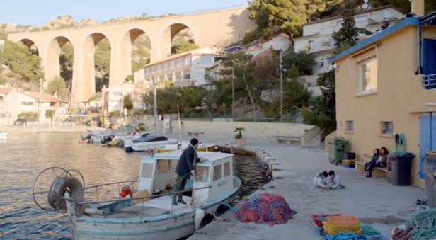 Many of Guédiguian’s films are set in Marseilles and they often feature the same trio of actors, Ariane Ascaride (Guédiguian’s partner), Jean-Pierre Darroussin and Gérard Meylan. La villa is set on the ‘Blue Coast’ between Marseilles and Martigues at Calanque de Méjean – a calanque is a creek, which I realise has a different meaning in French/English compared to US usage. Here it means a narrow inlet on a rocky coast with a small harbour and room for a few houses around the harbour and nestled in the in the steep slopes. It’s the only location in the film, extending a little way into the hilly hinterland of scrub and pines. The elderly owner of the restaurant on the harbour has a stroke at the beginning of the film and is then cared for by his son Armand (Gérard Meylan) who is the restaurant manager/chef. It’s winter so the restaurant has no customers. Coming home to support their brother are Joseph (Jean-Pierre Darroussin) and Angèle (Ariane Ascaride). Joseph brings with him the much younger Bérangère (Anaïs Demoustier). Angèle is a well-known stage actor and she has not been home for twenty years. We will learn later what caused her absence. There are only three other residents of the little community who we meet and one other important visitor.