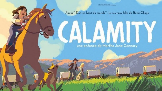 It took me a while to make the direct connection between Martha, the hero of the story, and the real ‘Calamity Jane’, mainly because I didn’t know about the historical Martha Jane Cannary. The film, directed by Rémi Chayé and co-written by Chayé with Fabrice de Costil and Sandra Tosello, does not set out to be an accurate partial biopic but the broad idea of the story fits the mythologising of her life that Cannary herself embellished. We meet a young teenage Martha on a wagon train in 1863 with her father and siblings. They are a relatively poor family compared to some of the other travellers. The wagon train is led by a rather strict ‘elder’ of the community, whose teenage son Ethan becomes something of a tormentor of Martha. I recognised some of the conventions in representing the wagon train crossing the plains and the mountain ranges from classic Hollywood films such as John Ford’s Wagon Master from 1950. Martha’s train doesn’t have a professional guide or ‘wagon master’ and that means that the narrative develops partly because of the mistakes the leader makes and accidents that befall the wagons. Several scenes reminded me of Kelly Reichardt’s Meek’s Cutoff (US 2010) – but that film framed the Western landscape in Academy ratio. Calamity offers us a CinemaScope view of the landscape which references Westerns from 1954 onwards.