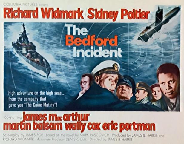 Widmark and Harris were producers on the film with Denis O’Dell as associate producer – I presume that he was the link to the British crew and creatives. He had also been associate producer on The Long Ships in 1964 which also starred Widmark and Poitier. That film was a UK-Yugoslavia co-production through Warwick Pictures an UK independent with a strong link to Columbia which also distributed The Bedford Incident. Widmark and Poitier were friends, going back to No Way Out (US 1950). A further link between some of the people working on this film was Richard Lester. The film was written by James Poe, an experienced writer on several high profile films, including Lilies of the Field (1963) for which Poitier won the Best Actor Oscar. The original novel of The Bedford Incident was written by Mark Rascovich who in the Second World War had been a flyer across the North Atlantic and in Africa. He did write other books but they were not adapted.