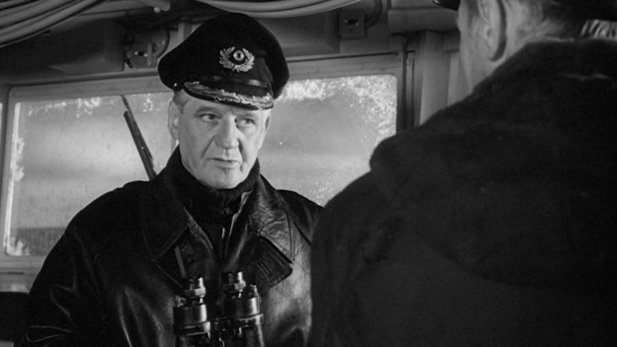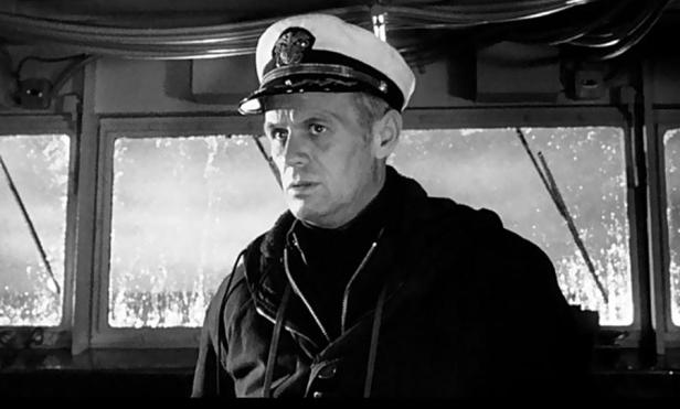 The ‘Bedford’ is a US Navy destroyer equipped with new technologies for submarine hunting and its captain Eric Finlander (Richard Widmark) is a determined hunter. Also on board is Commodore Wolfgang Schrepke of the Deutsche Marine (Eric Portman) who twenty years earlier was an ace U-boat captain. He is an observer for a NATO ally and also an adviser on submarine tactics. At the start of the film a helicopter delivers two extra passengers, a magazine journalist Ben Munceford (Poitier) and a doctor, Lt. Cmdr. Chester Potter (Martin Balsam) who has been in the US Navy Reserve since 1945. The other leading player is Ensign Ralston (James MacArthur), a likeable and talented young man being treated harshly by Finlander who thinks this will make him a better officer. All the action takes place on the destroyer which patrols the Denmark Strait between Greenland and Iceland. Finlander hopes to catch a Soviet submarine in Greenland territorial waters (i.e. in NATO waters). He identifies a ‘mother ship’ (a Russian trawler) and works out that a submarine is not far away and that it is a conventionally powered rather than nuclear vessel, meaning it can’t return to base under the Arctic ice. It may, however, have nuclear torpedoes. Eventually Finlander’s crew detects a submarine within NATO waters. How will the potential contact work out?