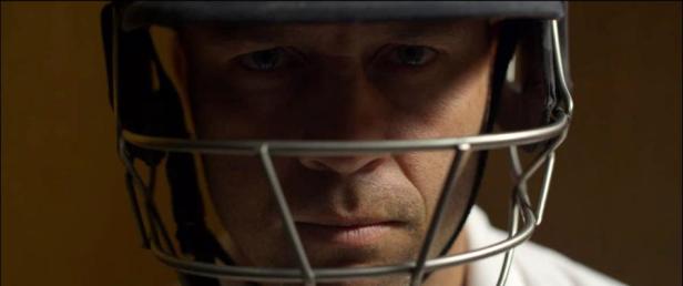 Each of the thirteen players speaks in the ‘talking heads mode’ of the conventional documentary but some are singled out to enable the narrative to be clearer. Strauss the captain trying to keep things under control, Graeme Swann the joker, Steven Finn as the youngest feeling the media interest or Tim Bresnan as perhaps the most bemused by the whole set-up of the team and the tour and Monty Panesar seemingly as the outsider in the squad all feature. But the biggest stories concern Kevin Pietersen, considered the best batter but also a controversial ‘celebrity’ figure and Jonathan Trott as the mild-mannered player most visibly affected by the mental health issues associated with cricket. These two are at the centre of the story and James (‘Jimmy’) Anderson is presented as the contrast, a calm figure who seems able to deal with it all. An early sequence in the film includes an extreme long-shot of Jimmy running along the sands of a river estuary, heading for a large post in the distance. Like a similar sequence later in the film of Jonathan Trott walking in his cricket gear across a crop field these kinds of ‘creative’ images contrast with the interviews, archive footage and clips of the players’ own video footage. There is a music score by Felix White of the Maccabees which works to stitch the different types of material together. ‘The Edge’ has several meanings. It refers to that sense that all élite players have that something extra that makes them Test players but it also warns us that they are often on the ‘edge’ of their self control and the stress can push them too far. But in cricket, the ‘edge’ also refers to the moment when a bowler induces the batter into a false shot and the ball makes the slightest of contacts with the bat and is edged into the hands of the waiting wicket-keeper or slip fielder. It is these tiny margins that separate the winners and losers in Test cricket.