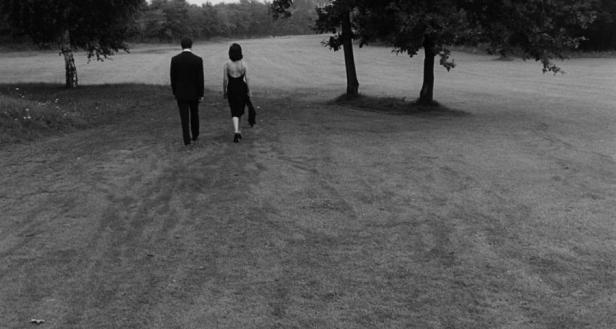 The setting of La notte is contemporary Milan. The narrative involves a married couple, Giovanni (Marcello Mastroianni) and Lidia (Jeanne Moreau) who first visit a dying friend in a swish modern private clinic – more like an up-market hotel or apartment block. They leave and drive through the streets, arriving at a party being given in Giovanni’s honour on the occasion of the publication of his latest novel. A greeting suggests it is still morning when they arrive. Giovanni is the centre of attention. Lidia becomes bored and wanders out to walk among the lunchtime crowds. It’s a warm summer’s day and she enjoys observing people. Eventually she hires a cab and ends up in the district where she lived with Giovanni when they first married. It is a more open area, perhaps on the edge of the city? Giovanni goes back to their apartment in the centre and falls asleep on his day bed. Later, Lidia rings him and he collects her. She wants to go out in the evening and they visit a night club and then move onto a party outside the city given by a very wealthy industrialist. Giovanni is again the centre of attention and Lidia feels marginalised. Later at the party, Giovanni spends time with the industrialist’s daughter Valentina (Monica Vitti) and Lidia leaves for a short time with a man from the party. At dawn Giovanni and Lidia are together again and they wander out onto the private golf course on the estate. They admit to each other that their marriage is facing a crisis. The camera moves away from them and the film ends.