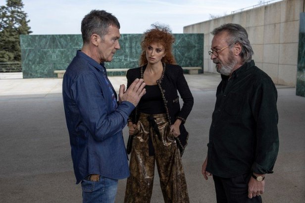 The key to the drama is the different personalities and approaches to acting taken by the two men and how they respond to Lola’s style of direction. She is very well-prepared and takes no nonsense from her stars. Her authority is emphasised by her appearance, including a distinctive coiffure and an array of extraordinary designer outfits (listed in the credits). Throughout the film she is, of course, ravishing. I chose the film partly to watch her and I wasn’t disappointed. The two men are opposites. Banderas plays the big film star with the ego and the super car. In terms of masculine sexuality he is as beautiful as Cruz and his presentation of the ego-driven Félix is both exaggerated and playful. Martínez as the older brother is a ‘serious actor’ who doesn’t work in the mainstream and teaches acting alongside his appearances on stage and in more art-oriented films. He is stuffy and plays to his own prestige. The two personalities in direct competition are a joy to behold. As we might expect there is a sub-text about the female director directing these pompous male actors and this is carried through in Lola’s choice of crew on her film and her other casting decisions.