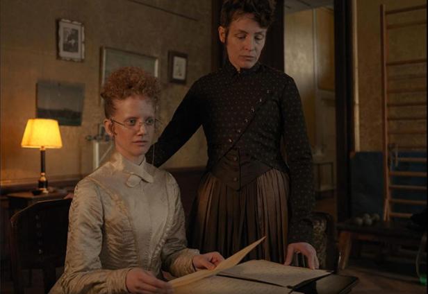 Sissi had been unhappy as a teenage bride. Her first child died and two of the other three were brought up by palace staff. In the film, Sissi keeps her youngest daughter more close to her and this becomes part of her attempt to distance herself from her royal duties. She keeps away from Franz Joseph and her son Prince Rudolf who seems more willing to side with his father. Sissi is close to her ‘ladies-in-waiting’ and her maids as well as to Ludwig and the young men she flirts with. The obvious anachronisms point towards the ways in which Corsage critiques the whole process of telling the stories/histories of celebrity figures.