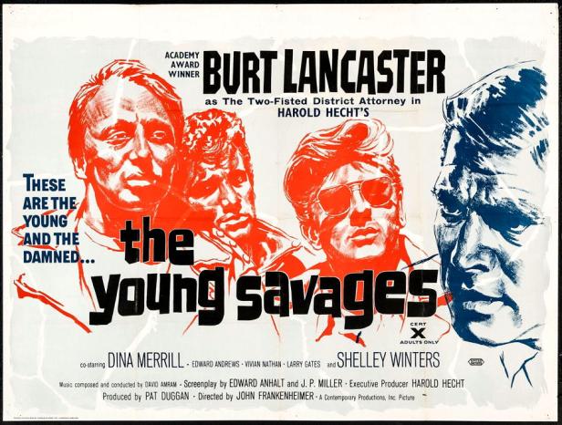 I found this film on a well-known social media website. The Young Savages dates from the last years of the ‘Hecht-Lancaster’ partnership. It was produced by Harold Hecht and starred Burt Lancaster, though it was not made by their usual production company but one created for this project. Hecht and Lancaster had been working together as ‘independents’ in studio Hollywood since 1948. The film was distributed by United Artists, the ‘non-producing’ studio that prospered in the 1950s and 1960s. The director was John Frankenheimer who had previously made only one feature, but was well-regarded for his television work. He would go on to make three major features with Lancaster over the next two years, The Birdman of Alcatraz, Seven Days in May and The Train.
