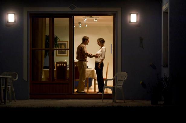 We work mostly with natural light and go to the limits of what’s possible with 35mm stock. At the same time it should “look good” and not be an attempt to simulate documentary authenticity à la Dogma. Extremely few cuts, long shots. Of course that invites the danger that there are fewer possibilities to make corrections during editing. Everything must be precisely planned for shooting. That’s what we look for during shooting, and then we don’t have to do much talking about what we want, it has become natural. A director couldn’t ask for anything more. (Götz Spielmann in the Press Notes interview discussing his work with Martin Gschlacht)
