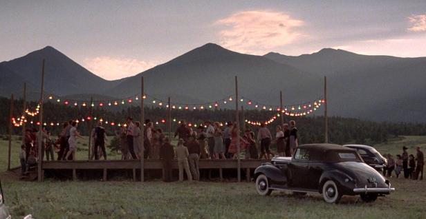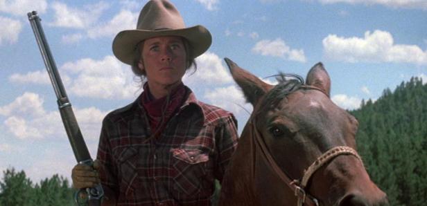 The romance between Ella and Frank develops slowly. Initially Ella is so prickly and tough, steeling herself to fight Ewing, that she builds a carapace around herself and keeps Frank at a distance. Later when it happens the emotional and sexual relationship seems quite natural. The key scene is perhaps another Fordian moment, when the couple attend a dance on the open plain which calls to mind the famous scene in My Darling Clementine with Henry Fonda and Cathy Downs. For Ella, the scene is marked by her change of costume. For once she swaps the jeans, boots and Western shirt for a blouse with puff sleeves, a long colourful skirt and her long hair loose and free. Where her father in 1946 was stiff and formal, she is now able to dance more freely. Willis and Pakula then have Ewing on horseback on a rise looking down on the lights of the dance far below. The dance comes as part of the celebrations for the cattle round-up and the anticipation of a good sale of stock.
