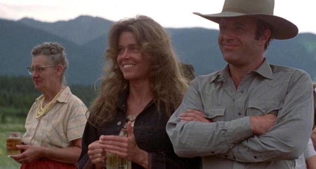 The narrative begins with the return to the US of two GIs who have decided not to re-enlist in 1945. They have bought a small piece of land from rancher Ella Connors (Jane Fonda) in a seemingly peaceful valley in the Rockies (perhaps meant to be Montana, though filmed in Colorado and Arizona)) but within the first few minutes of the narrative they have been picked off by a sniper. One of them is killed instantly but Frank (‘Buck’) Athern (James Caan) survives and will end up being cared for by Ella and her single hand, ‘Dodger’ (Richard Farnsworth). Ella is quite curt with Frank and her care is just the bare necessity. But when he can ride again Frank and Ella come to an understanding. He will work with her, but not for her. She doesn’t really have a choice. J.W. Ewing (Jason Robards) is the rancher who wants the whole valley and has been trying to get Ella out for years. He’ll stop at nothing as the shooting of Frank and his partner has proved. Ella needs Frank’s help to get together a big enough herd of cattle to sell in the Autumn and retain her ownership of the land. That’s the basic plot.