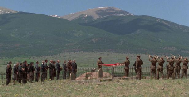 There is just one scene in town with a bar-room brawl, otherwise the narrative takes place on Ella’s ranch or in Ewing’s Victorian mansion. With so few characters it’s inevitable that the narrative is constructed around their hopes and fears. I note that Phil Hardy in his Encyclopedia of Western Movies (1985) hails the film as a ‘major Western’ but suggests that it is imbued with some of the paranoia of Pakula’s previous films and also the sense of loss and potential renewal that underpins the Spring of 1945. The war is only introduced directly in perhaps three scenes. In the opening, Ewing is attending the burial of his son with a military salute on his ranch – a distinctly John Ford image. Later the oil man Neil Atkinson (George Grizzard) will refer to the race to Berlin and the fear that the Russians will get there before the Americans and then in a later scene, he will argue that oil will be needed for the economic growth in post-war America. However, I now realise that Frank is possibly suffering from some form of PTSD, although he controls it well.)