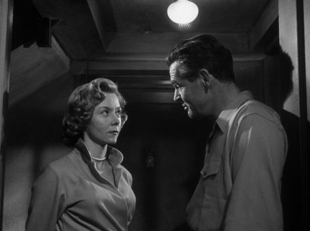 It would also be possible to categorise the narrative as having certain elements of melodrama. We meet both Johnny’s ex-wife and their child and his colleagues at the club (including a new girlfriend?). We also meet Earle’s partner, the younger Lorry (Shelley Winters) who clearly cares for him, but we also meet their neighbour Helen (Gloria Grahame) who is very interested in the dangerous Earle in terms of his sexual attraction. Given that the Production Code was about to be swept away in 1960, perhaps it is not surprising that Helen and Earle have a very sexy scene together. On the other hand we also see Earle in a bar commit a real act of violence on a young serviceman (Wayne Rogers later to star in TV’s long-running series M*A*S*H) who goads him a little too hard.