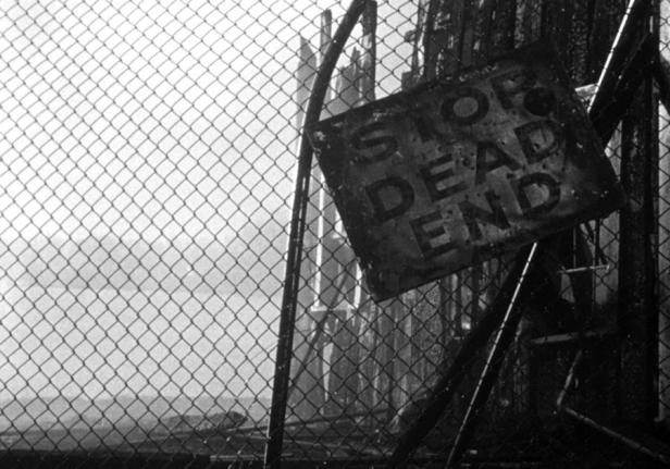 The film was shot in parts of Central New York City and in the town of ‘Melton’ on the Hudson with interiors in a small independent New York studio. The street scenes have a realist feel similar to those in the NewYork crime films of Mark Hellinger in the late 1940s such as Jules Dassin’s The Naked City (1948). The camerawork and editing are both innovative and there is a strong sense of the tension between Johnny and Earle. The excellent score would later become an MJQ album. Robert Wise directs intelligently with great control. The odds against any survivors of this enterprise are indeed very long and they are unlikely to see tomorrow so it isn’t giving too much away to reveal that the film’s ending is as apocalyptic as that of Kiss Me Deadly (US 1955) – this was the height of the Cold War so the reference is apt. The last image is a sign hanging askew which reads ‘Stop! Dead End’.