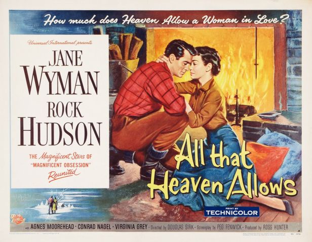Forty-something Cary Scott (Jane Wyman), whose husband died a few years ago, is bored with her passionless life but finds the attentions of the staid, and much older, Harvey unappealing. She finds herself falling in love with her gardener Ron Kirby (Rock Hudson) several years younger. Ron lives a ‘natural’ life, growing trees, away from the hypocrisy of bourgeois (middle-class) society. At first, their relationship is secretive, but when they decide to marry she immediately runs into the opposition of her snobby friends, ‘the country club set’, and her children who are studying at college. A cocktail party, where Ron was to be introduced to Cary’s friends, degenerates into a confrontation between Ron and Howard who had previously attempted to seduce Cary. Returning home, Cary is greeted with an ultimatum by her children who cannot bear the thought of their mother marrying a social ‘inferior’, particularly one much younger than herself. In guilt-ridden desperation, Cary asks Ron for a delay in their marriage, he refuses on the grounds that she shouldn’t bow to peer and offspring pressure. Cary breaks their relationship in a self-sacrificial gesture.