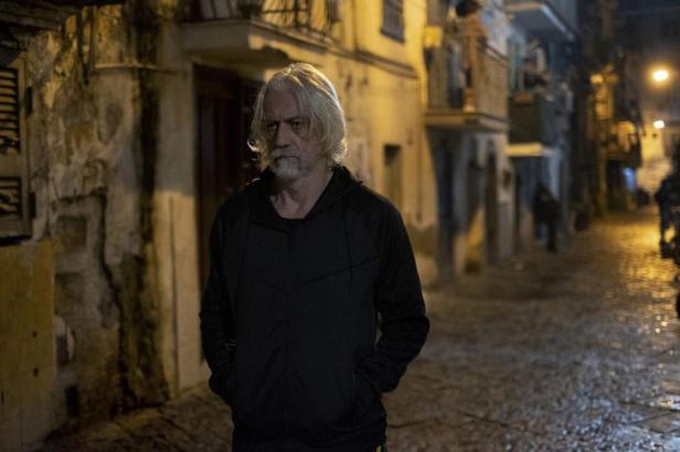Felicé Lasco (Favino) grew up in Rione Sanità (‘Neighbourhood of Health’), a district just North of the city centre, with narrow winding roads between tall buildings as well as broader boulevards and piazzas. Though developed for the aristocracy centuries ago, the area is now run-down and has the reputation of being controlled by the Camorra. Most of the narrative is confined to this area which has featured in many Italian films and one of the strengths of the film is the cinematography of Paolo Carnera. As Martone suggests the film in the first half feels almost like a documentary, exploring the streets, cafes and shops of the district as ‘Feli’ begins to try to merge his memories with the new realities. He’s arrived in order to see his aged mother, perhaps for the last time. His wife back in Cairo, Arlette (Sofia Essaïdi), has encouraged him to make the trip. He eventually finds his mother, but not where he expected, and they share some intimate and moving moments, featuring a great performance by Aurora Quattrocchi. We gradually begin to learn a little of Feli’s story. His mother was moved out of her apartment by Feli’s old best friend Oreste (Tommaso Ragno) who Feli hasn’t seen since he left all that time ago.