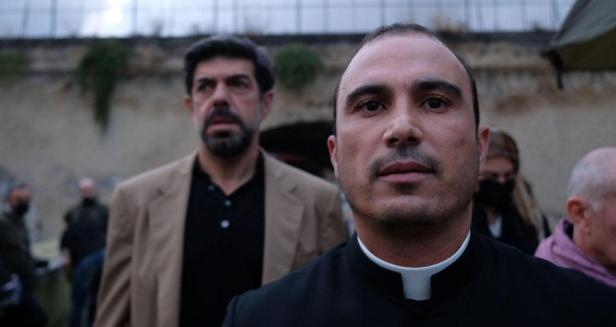 It emerges that Feli wants to see Oreste, their original parting still troubles him. It’s not giving too much away to reveal that Oreste was always likely to become a major criminal figure and we see some of the antics of Oreste and Feli as young teenagers in a series of flashbacks shot on 16mm or 8mm film. The way to find/meet Preste now is through Father Luigi, the priest from large and impressive local church. When I first sighted Father Luigi (Francesco Di Leva), I thought that he looked more like a leader in the Camorra than a priest. I wasn’t surprised then to discover that he had played a political/crime boss, in the same setting, in an earlier film by Mario Martone – The Mayor of Rione Sanità (2019). Father Luigi is in some ways the most intriguing figure in the film. He knows all the families in his neighbourhood and all their children. He has taken the teenagers under his wing and welcomes the interest of Feli. The fourth central character is Arlette who stays in Cairo for most of the time, but who does speak to Feli through video messaging. She is an attractive woman, a dozen years younger than Feli, who lives in a beautiful house and works in a hospital laboratory. Her telephone conversations with Feli seem warm and intimate and she enjoys seeing what he is getting up to but that is all we know about her. (I later realised that Sofia Essaïdi was the star of the French TV serial La Promesse (France 2020) – she was born in Casablanca.)