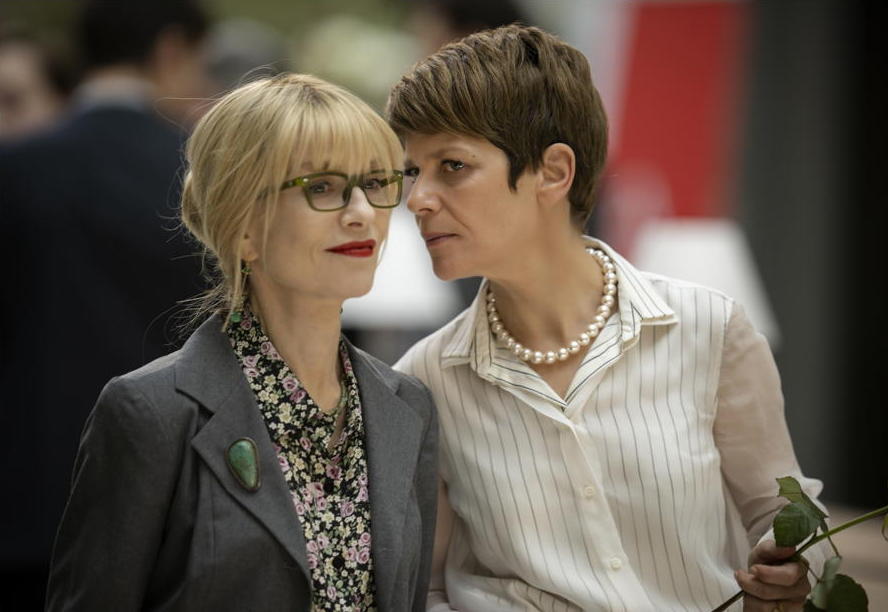 In the film, Isabelle Huppert plays Maureen. She doesn’t attempt to represent ‘Irishness’ in any way, but Huppert speaks English fluently and she is costumed and made up for the part so that she does resemble the real Maureen Kearney. Huppert and Kearney are roughly the same age, Huppert being just two or three years older. But since the film starts in 2011, Huppert must try to look as if she is in her late fifties rather than her late sixties. The makeup flattens out any lines of ageing and the bright clothes, glasses and blonde hair help to represent Kearney. Much has been made of the glasses she wears and the fact that Huppert, who is often very still, acts very well only using her eyes. The film narrative begins with Kearney’s visit to a plant in Hungary where female workers face the sack by their misogynistic boss because of low productivity and she vows to help them. In 2011 the right-wing Sarkozy government was coming to its end. The position of Areva as a state-controlled corporation is crucial here. The CEO of Areva, a woman who supported Kearney, was replaced but expected to be given a job by the new regime of the Socialist Francois Hollande. But this didn’t happen and Kearney was left isolated and threatened by the new male CEO. At this point Kearney was given information by an EDF whistle-blower about a plot to eventually replace Areva as the leading French nuclear company with EDF, a smaller state-controlled company and at this point only an electricity supplier, that was going to ally with Chinese nuclear interests. Kearney recognised a threat to her workers but found it difficult to interest the new government ministers. Her new CEO branded her an ‘hysteric’.
