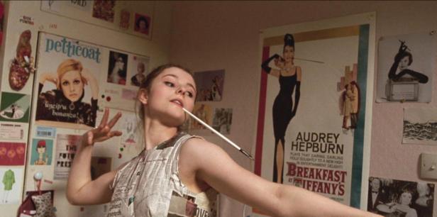 The narrative of Last Night in Soho begins in rural Cornwall in the bedroom of ‘Ellie’ (Eloise) Turner played by Thomasin McKenzie. She is wearing a dress in an early 1960s style, made out of beautifully-cut sheets of stiffened newspaper pages as she dances about to the sound of Peter and Gordon’s ‘A World Without Love’ (February 1964) playing on her Dansette. The detailed mise en scène of her room confirms that she is a would-be fashion designer obsessed with 1960s pop culture. Pretty soon we learn she has been accepted at the London College of Fashion now part of the University of the Arts in London and she gets on a train for the capital. But before that we get a clue that she thinks often about her mother who died when she was a small child and who perhaps had similar ambitions? Ellie has been brought up by her grandmother, played by Rita Tushingham, who herself played a young woman from ‘the North’ who travels down to London in Smashing Time (1967) and in the earlier film The Knack (1965). This new film also includes two other icons from the mid-1960s in the form of Terence Stamp and Diana Rigg. It is dedicated to ‘Diana’ as Ms Rigg died before the film was released.