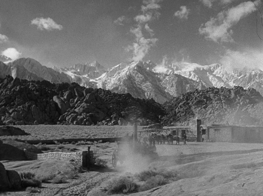 The genre categorisation also derives from other factors, including a script by Dudley Nichols, one of the best known and most celebrated scriptwriters of the period and best-known perhaps for his several collaborations with John Ford, including Stagecoach (1939). Though the story details are different, there is a clear connection between Rawhide and Stagecoach, especially in the interior scenes in the staging post. But the difference is in the presentation. Stagecoach was photographed by Ford regular Bert Glennon who knew how to give Ford the landscape shots and deep focus interiors that the director envisaged. Rawhide was shot by Milton Krasner, just as experienced as Glennon, but though familiar with Westerns not so wedded to the kind of imagery created by Ford. At this point Krasner was more associated with crime dramas and melodramas. Nevertheless, Krasner does a fine job with location shots of the Alabama Hills in Lone Pine, California but also ‘night for night’ shots in and around the station house. He serves Hathaway’s carefully choreographed mise en scène and provides close ups as required in compositions which are often presented in depth (see above). Krasner’s two 1950s pictures were All About Eve and the early Sidney Poitier starrer No Way Out. Some reviewers have described Rawhide as a film noir Western. I can see the case for this and it would bracket the film with others such as Pursued (1947) with Robert Mitchum. But noir cinematography was dominant across several genres in this period and it may be more useful to think about the narrative’s links to crime thrillers and in particular hostage narratives or even ‘home invasion’ narratives. I note that some reviews mention The Desperate Hours (US 1955), William Wyler’s film in which Humphrey Bogart leads a trio of escaped convicts who take over a suburban home and keep the family hostage. This had occurred to me as well as I watched Rawhide.