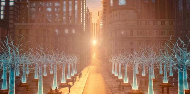 It is 2123 and a community in Budapest has survived under a massive dome. We don’t know if there are other communities elsewhere, but in Budapest, the citizens have agreed that human life should be limited to 50 years. Outside the dome all animal and plant life has died (presumably from climate change, pollution and other ecological disasters) except for a genus of trees. Since natural food has disappeared, the population can only be nourished by the bodies of the dead. Citizens are taken for a form of recycling when they reach 50. They can agree to an implant which automatically begins the process. I wasn’t clear on what happened to those who refused to comply, but presumably the process can begin under duress. Living humans are slowly transformed into hybrid ‘tree humans’ in the ‘plantation’ (under another dome). The trees grow leaves which can then be harvested by machines to become the basic food resource which can be made into different kinds of foodstuff.