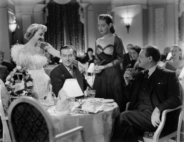 Monthly Film Bulletin‘s reviewer in June 1952 concedes that the “backgrounds are authentic” (even though the locations appear to be ‘stand-ins’) but argues that Milland plays the kind of American that English women are expected to fall in love with. Even though there were more difficulties in transatlantic travel in 1951 there were plenty of Americans in the UK yet this film seems intent on emphasising every ‘cross-cultural’ exchange between Douglas and the English, Welsh or Scottish characters he meets. He is presented as ‘brash’ and ‘loud’ and perhaps too quick to take offence. Most of the Englishmen appear ‘stuffed shirts’ as far as he’s concerned. There is also a tedious joke, repeated several times in which Douglas is unable to understand UK currency, i.e. £sd. These kinds of criticisms were also driven by the practice in British cinema of bringing in minor American stars or ‘B’ list stars to play in British films because the audience was thought to favour Hollywood style. And yet some of the casting decisions do seem to try to liven up the exchanges. Putting aside Edward Rigby as a Welsh coalminer, the most striking character is ‘Sholto Lewis’ played by Marius Goring who is third-billed. Playing at his most camp, Goring reminds us of his role as the Heavenly Conductor in Powell and Pressburger’s A Matter of Life and Death (1946). In this case he is a ballet choreographer and director following on from his position as the second in command of the Commando group after Hugh Sinclair’s Major McArran. These two men are perhaps the most likely to know what happened to Douglas’ brother. But there was also a third officer on the raid, whose job was to impersonate a German radio announcer. He is played by Naunton Wayne, probably best remembered as partnered with Basil Radford as ‘Charters’ and ‘Caldicott’, a pair of bumbling cricket fans appearing in films like Hitchcock’s The Lady Vanishes (1937) and Carol Reed’s Night Train to Munich (1940). Wayne brings some of this persona with him in his role as ‘Reggie Sinclair’ who was the ‘outsider’ on the commando raid and is now a second-hand car salesman, not averse to conning Douglas for a few pounds but also perhaps more likely to tell the truth about what happened? Wayne’s role is ‘enhanced’ by partnership with Dora Bryan as ‘Bubbles’ the nightclub singer. Bryan like Wayne often combined comedy and dramatic roles, albeit in a very different social class context.