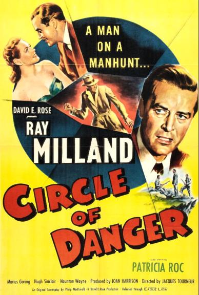 Although this is a conventional post-war drama (thriller is possibly pushing it too far) it is interesting because of its director and crew and unusual mix of British actors. As far as I can see it was made as an independent UK production from Coronado Productions, run I think by the American David E. Rose (not to be confused with the David Rose the British producer who was the first head of Film on Four). Coronado made British films with American stars in the lead roles. Some were set outside the UK, others featured American characters coming to the UK. Circle of Danger was produced by Joan Harrison who had gone to Hollywood with Alfred Hitchcock as a secretary and had developed a career as a writer and producer. This 1951 film has Ray Milland as the Hollywood star and it is directed by Jacques Tourneur. The film was distributed by RKO in the UK and Eagle-Lion in the US.