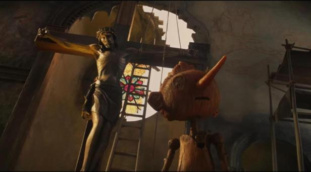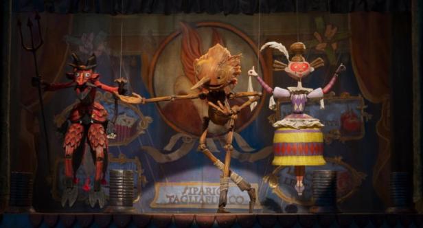 Does the new setting work? Yes, I think so. Del Toro himself has already made several live action films with anti-fascist narratives from The Devil’s Backbone (Spain-Mexico 2001) to Hellboy (US 2004). The world of marionettes was still popular in Italy in the 1940s and a show with a historical/traditional story is being performed in the Naples section of Roberto Rossellini’s Paisan (1946) as American troops move North from Sicily during the Allied advance in 1943. Del Toro does make the actual date of Pinocchio’s adventures a little vague but this is after all a ‘dark fantasy’ akin to Pan’s Labyrinth (Mexico-Spain 2006) rather than a realist story. Del Toro also utilises the Catholic imagery of his youth and makes the connection between the wooden boy/marionette with the wooden Christ, also carved out by Gepetto. There are several other distinctive del Toro touches, not least the fairy sisters, good and bad who govern the crisis moments in the life (lives) of Pinocchio and seem to bear resemblance to the the fantasy characters of Pan’s Labyrinth. The film had been a long-cherished project by del Toro and for me this is a total success with its only flaw being its perplexingly brief stint in cinemas.