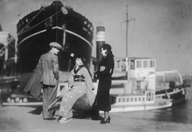 The sequence of shots take on added resonance as the film opens with a departing liner and the cutting of streamers from shop to quay. Sunako’s destination is not stated, and whilst she and Miura are on an ocean going liner she is still dressed in traditional Japanese garb. I should add that it is Henry, as much as Sunako, who threatens the marital order. He is one of those rather weak and ineffectual males often found in melodrama, where as Dora and Sunako are stronger characters.