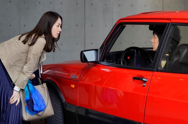 Two years later, still struggling with Oto’s death, Yûsuke accepts an offer to direct a production of Uncle Vanya in Hiroshima. He drives to the theatre in his beloved fire red Saab 900, where, upon arrival, to his surprise and disappointment, he learns that for legal reasons, he will be forced to let Watari Misaki (Miura Toko), a young chauffeur concealing a traumatic past of her own, drive his car.