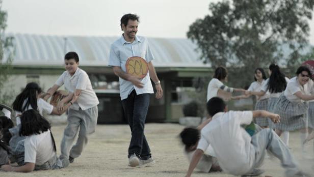 Sergio (Eugenio Derbez) is a relief teacher taken on by principal Chucho (Daniel Haddad) of an elementary school on the outskirts of the Mexican border city of Matamoros. Sergio is assigned to a class of 12 year-olds. The school has the worst record in the state (possibly the nation?) in the National Tests for Grade 6 and Sergio is the only ‘volunteer’ to take on the role and he has some revolutionary new ideas. He’s not a young man anymore but he is much more radical in his approach than anyone else in the school. He starts off by moving the furniture and breaking up the formal rows of desks. At first the students are very sceptical but Sergio eventually begins to win them over. He asks them to think about problems rather than teaching them how to pass the test, but it certainly isn’t plain sailing. There are lots of problems in the school and in the local community, not least the drugs gangs that operate in the border region. Mysteriously the school hasn’t got any computers, even though Sergio agreed to take the job because he had seen a news report suggesting the school had been given funding for a computer lab. The film narrative develops not just on the basis of Sergio and his students in the classroom but also on four sets of relationships that extend outside the school. Sergio builds a friendship with Chucho which at first seemed unlikely. He also has a closer relationship with three individual students. None of these relationships is in any way ‘dangerous’ though there is a scene in which he seems to be stroking a girl’s arm and back to encourage her when she is speaking to an education official which would cause horror in a UK context, I think. Some of Sergio’s actions also have unexpected consequences, one resulting in shocking violence. Could he have foreseen this?