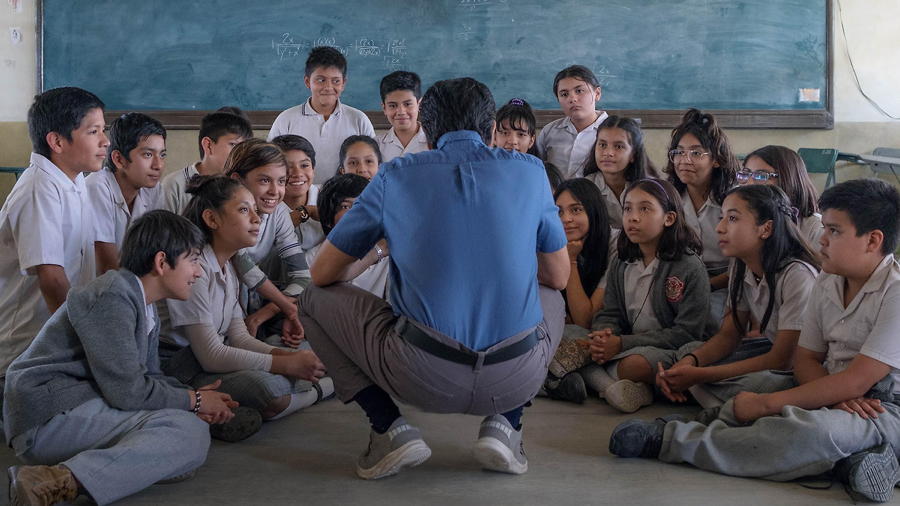 Sergio (Eugenio Derbez) is a relief teacher taken on by principal Chucho (Daniel Haddad) of an elementary school on the outskirts of the Mexican border city of Matamoros. Sergio is assigned to a class of 12 year-olds. The school has the worst record in the state (possibly the nation?) in the National Tests for Grade 6 and Sergio is the only ‘volunteer’ to take on the role and he has some revolutionary new ideas. He’s not a young man anymore but he is much more radical in his approach than anyone else in the school. He starts off by moving the furniture and breaking up the formal rows of desks. At first the students are very sceptical but Sergio eventually begins to win them over. He asks them to think about problems rather than teaching them how to pass the test, but it certainly isn’t plain sailing. There are lots of problems in the school and in the local community, not least the drugs gangs that operate in the border region. Mysteriously the school hasn’t got any computers, even though Sergio agreed to take the job because he had seen a news report suggesting the school had been given funding for a computer lab. The film narrative develops not just on the basis of Sergio and his students in the classroom but also on four sets of relationships that extend outside the school. Sergio builds a friendship with Chucho which at first seemed unlikely. He also has a closer relationship with three individual students. None of these relationships is in any way ‘dangerous’ though there is a scene in which he seems to be stroking a girl’s arm and back to encourage her when she is speaking to an education official which would cause horror in a UK context, I think. Some of Sergio’s actions also have unexpected consequences, one resulting in shocking violence. Could he have foreseen this?