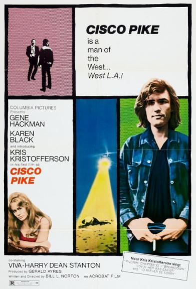 Looking at Cisco Pike again after more than fifty years, there were a few surprises for me. Recognising the sexism of the period but putting it aside for now, two things stand out. One is the presentation of Venice Beach and locations such as the studios, the Troubadour music venue and Sunset Boulevard. It seems like a realist and rather downbeat presentation of a Los Angeles that was not so familiar in mainstream Hollywood in the 1960s. The cinematographer Vilis Lapenieks had previously worked mostly on TV but also on some small scale features and at least one title I recognise: If It’s Tuesday This Must Be Belgium (1969). That was a comedy about a group of Americans touring Europe and had a truly stellar cast. Bill Norton wrote and directed Cisco Pike. He was just 27 and this was his first feature after studying at UCLA’s film school. You do wonder about Columbia’s decision to finance his film and how he managed to attract a great cast. For a first feature he does pretty well. It isn’t a tight narrative throughout but he manages the reflective parts well and there are some good lines in the script. Some reviews refer to a melancholic picture and that seems a good call. It certainly isn’t ‘feelgood’. Nobody is redeemed and the hero doesn’t ride off on a white horse (even ironically). Norton went on to be a prolific director in television. The second stand out from my re-viewing is simply Kristofferson’s presentation. He looks lean and ‘fit’ in both meanings of the word. He is also able to be laid-back and alert and angry and his drawl is a distinguishing feature. Of course he is in some ways playing himself, but I think you can see what attracted audiences, some of whom wouldn’t know him as a singer-songwriter.