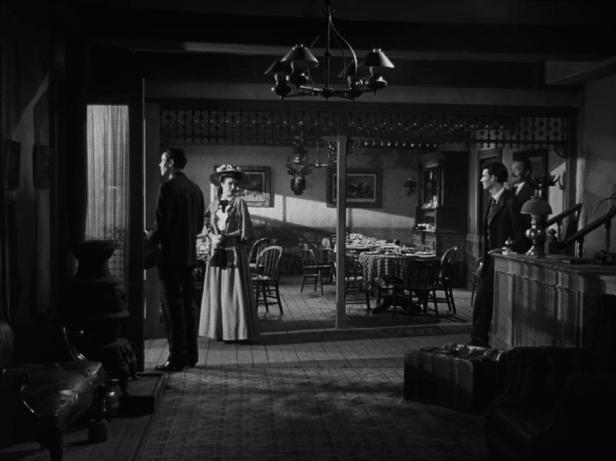 Re-watching many of John Ford’s best-known films can sometimes be surprising. Over the last fifty years or more I must have watched My Darling Clementine many times, but last night’s screening via BBC iPlayer was as if I was seeing it for the first time again. I think there are two reasons for this. Many previous viewings were on TV back in the sixties, or on old 16mm film prints, videotape recordings or cheap DVDs. Also, I have now read much more about Ford and my expectations have changed. To give just one example, I used to think of this film as relatively straightforward and not particularly visually exciting but certainly a stand-out because of key sequences such as the dance on the day the new church outside Tombstone is celebrated. I’d assumed a relatively inexpensive production before Ford became more ambitious with his later 1940s films in colour. However, I now read that with his return to 20th Century Fox for this post-war Western, Ford found studio boss Darryl Zanuck prepared to make a major picture and to increase the budget to $2 million. The price to pay for this was that Zanuck then became more concerned to oversee and augment Ford’s cutting of the picture. More on this later but my initial surprise was that I found the film to be more related to Ford’s earlier work in the 1940s than I expected, especially in the compositions achieved by Joe MacDonald. At times the film seems more than usually carefully constructed in deep focus with both the elaborate ceilinged sets for the buildings in Tombstone (and the noirish lighting style) and also in some of the outdoor sequences filmed in Monument Valley.