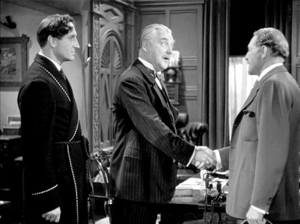 Using an original story written and then scripted by Bertram Millhauser and Lynn Riggs, the film begins at Croydon airport where several men board a Dakota taking them first to Lisbon where four of them change for a flight across the Atlantic in a flying boat, eventually arriving in New York. The four then board a train for Washington. It soon becomes apparent that three of the men are plotting to kidnap the fourth because they believe he is carrying secret documents. The trio are never identified as Nazis or as working for the Germans but they are a threat to the British Empire like all the Holmesian villains. Their victim, Mr Pettibone, a British agent meets around four other people in the bar on the train and he could have passed on the documents to any of them before he is grabbed by the trio and in effect ‘disappears’. Back in London the authorities contact Holmes and ask him to help track down the documents. Holmes deduces that Pettibone would not have carried two sheets of paper but would have found a way of hiding them in a form easy to pass on to an associate or anyone unaware that they were receiving something important. Holmes and Watson then fly to Washington in an RAF bomber hoping to find the documents before they can fall into the ‘wrong’ hands.