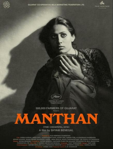 The Churning was one of Smita Patil’s early films in which she has a small but crucially important part. The title of the film points immediately to a pun based on the fundamental process of the dairy industry in rural India and the first title card on the film announces that it was funded by 500,000 dairy farmers in Gujarat under the banner of the Gujarat Milk Co-op Marketing Federation. The narrative is about setting up a Milk Co-operative but if you think that means a worthy docudrama, think again. The milk gets churned but so do the lives and the relationships of the villagers and the team from the city who come to introduce the idea of the co-op. The film was written and directed by Shyam Benegal with Vijay Tendulkar and Samik Banerjee. Benegal has a slightly different background to the other major figures of Parallel Cinema in that he didn’t attend FTII (Film and Television Institute of India), though he did teach there later and instead began a career in advertising as a copywriter in the mid 1950s and moved on to making documentaries. He was also more able than most other filmmakers to find ways of raising money for his films, as this production demonstrates. Nevertheless his ideas and the narrative content of his films make him an important part of the development of parallel film. Born in December 1934 Benegal has been the most prolific of all the filmmakers associated with Parallel cinema. I’m not going to try to explain Indian Parallel Cinema at this point but I did try several years ago on this blog. During the 1980s when I first became interested in exploring these films, we used three terms to describe films made from the late 1960s onwards which took a different approach to the commercial popular cinemas of India. Some of the more experimental films were referred to as ‘New Cinema’, some of those closer to commercial films were sometimes termed ‘Middle Cinema’. Parallel Cinema was a more distinctive term to describe filmmaking in several parts of India in a variety of languages and arguably developed the most currency.