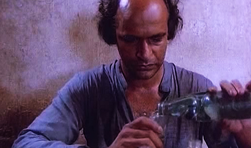 The film is based on a story by the well-known Malayalam writer C V Shriraman and this marked a change for the director Govindan Aravindan whose earlier film Thamp (1978) is one of the few Indian Parallel films to become available on Blu-ray in its restored form. Chidambaram represents a change for Aravindan in two ways, first because it is a narrative film based on a published story and second because it used ‘name actors’. Bharat Goy (as the Superintendent, Shankaram) who had appeared in Thamp was now well-known and the young bride Shivakami is played by Smita Patil who was at her peak as one of the leading actors of both Parallel and mainstream cinema in India. Both actors had won various awards and were nationally recognised. The narrative is in two or three distinct sections. In the first we meet the central characters in the period up to the marriage and in the second the tension between Shivakami, the Superintendent and Jacob develops, leading to a dramatic climax. Finally in the third ‘act’, Shankaran is overwhelmed by guilt and shame and takes to drink before being advised by a doctor to consider exploring religious ideas and values as an antidote. To do this he goes on a long journey, ending up at the temple of Chidambaram near the coast of Tamil Nadu, south of Chennai in the north-east of the state. The local name for the settlement is ‘temple city’ and I think the specific temple referred to might be the Nataraja temple, referring to Shiva in the form of a dancer. This suggests that there is a metaphor running through the film that refers to stories about Shiva. I’m not well-versed in Hindu mythologies but I am aware that Shivakami is presented quite often in relation to flowers and trees and the forest. Shankaran on his quest of some form of redemption does seem like another mythological figure.