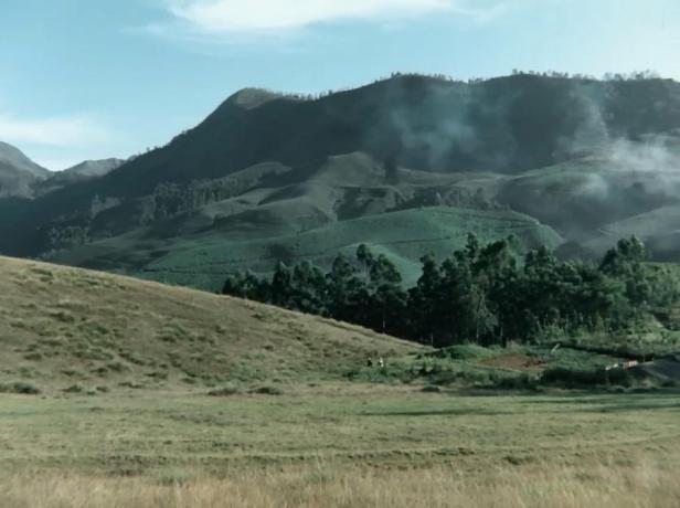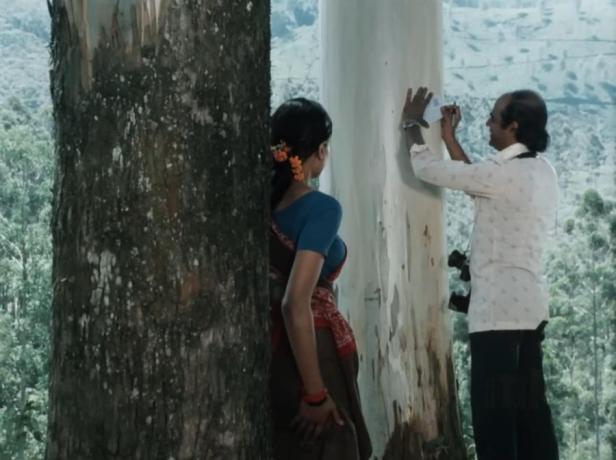The narrative is set in and around Munnar, the Kerala district high in the Western Ghats and featuring tea plantations and dairy farming. The area is close to the border with Tamil Nadu and attracts Tamil workers. Muniyaandi (Sreenivasan) is a young man working as a cow herd on a large government farm. One day he tells the Office Superintendent of the farm, Shankaran (Bharat Gopy), a generally friendly man, that he has found a Tamil girl who he wants to marry. Shankaran is happy for him but the overseer Jacob is more curt and demands that Muniyaandi be back at work the day after the wedding. The tension between the three men gradually develops during the narrative with Shankaran photographing the wedding but also falling out with Jacob who thinks he shouldn’t be fraternising with workers like Muniyaandi. The plot is described in some detail on the Wikipedia page for the film. In fact the Wiki page covers the film very well using reference sources that can be checked out. I therefore find myself attempting a kind of ‘meta analysis’, picking out aspects of the production that interest me.