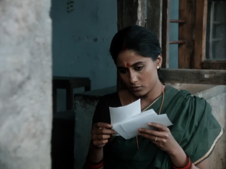 Shivakami looks at the photographs of the wedding taken by Shankaran