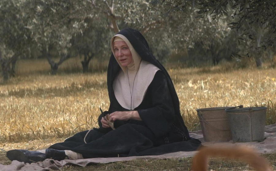 The ‘new boy’ finds himself in what is a very small orphanage with no more than a handful of boys, some of whom are Indigenous and the others are white or perhaps ‘passing for white’. The sister in charge is Sister Eileen played by Cate Blanchett and the only other adults are a sister known as ‘Mum’ (Deborah Mailman) and the farm-hand/handyman George (Wayne Blair). We quickly learn that there was originally a monk Dom Peter who was in charge and we assume that he died but his death was not reported and Sister Eileen pretends he is still alive. We suspect that she is worried her drinks habit will be discovered by any investigation. The orphanage farm survives by harvesting a grain crop and other smaller food production activities.